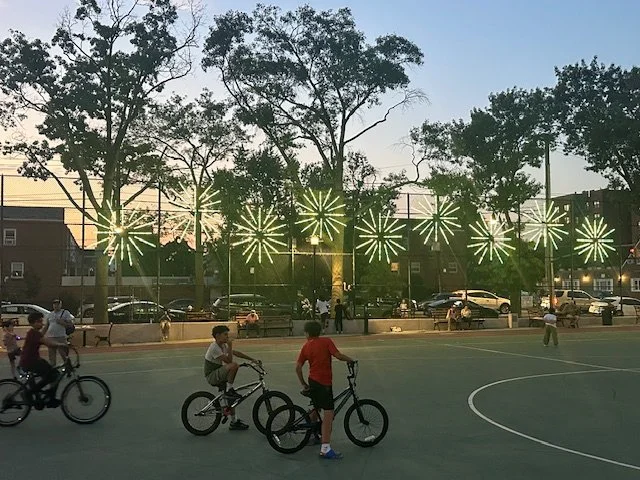 The “Morris Park Stars” follows the success of a previous installation at the same location – “The Pulse” (June 2024- June 2025, which was awarded a “Honorable Mention” at the LIT 2024 International Lighting Design Awards competition amongst over 580 entries in 52 countries. --- “Morris Park BID is proud to bring a new large-scale light installation to Loreto Playground, a public art project unique to Morris Park in the Bronx. We are grateful to all the NYC agencies supporting our advocacy for investments in public realm surrounding our commercial corridors.