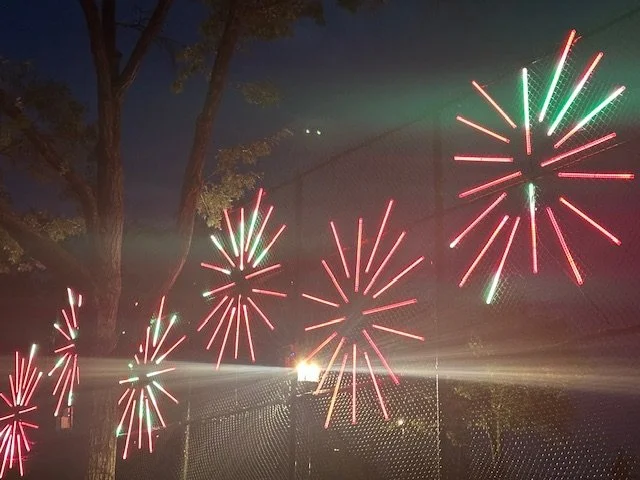 The concept of the “Morris Park Stars” is the universal aim for the stars, translatable across all cultures, bringing a sense of joy, energy and exuberance around the park. The installation enhances Loreto Playground as the center of the Morris Park neighborhood, where families spend time together, exercise, socialize and enjoy the outdoors. The installation consists of 144 3ft light tubes configurated in the shape of 9 “stars” forming a 110 foot -long dynamic light fixture. Installed 9 feet above ground, the structure is dynamic and versatile, changing colors and patterns to accompany culturally relevant community celebrations and special occasions. The installation covers the fence on Morris Park Avenue at Loreto Playground, between Haight Avenue and Tomlinson Avenue and will be displayed between July 2025 – June 2026.